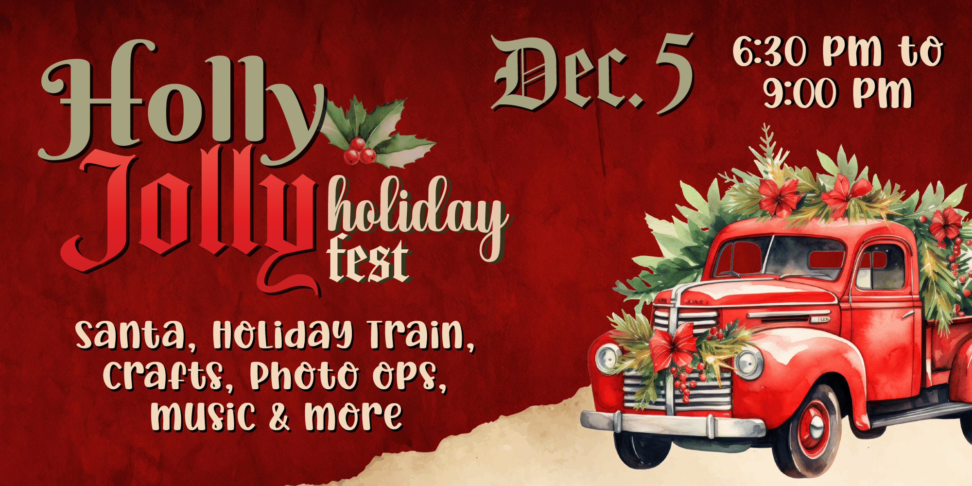 Step back in time for the biggest holiday celebration of the year! Join us at Mountain Grove and Citrus Plaza for the Holly Jolly Holiday Fest on Dec. 5th from 6:30 pm to 9:00 pm.